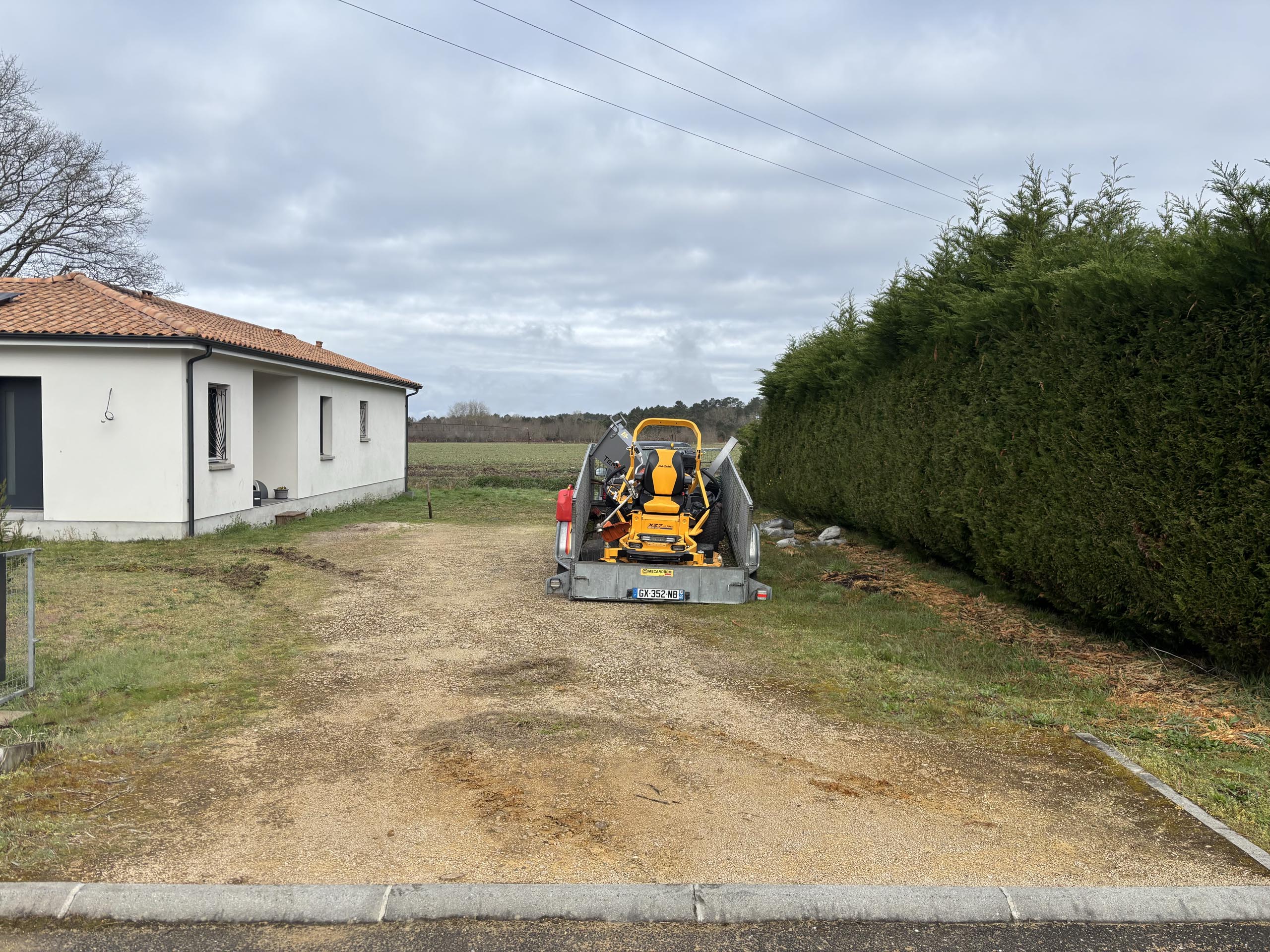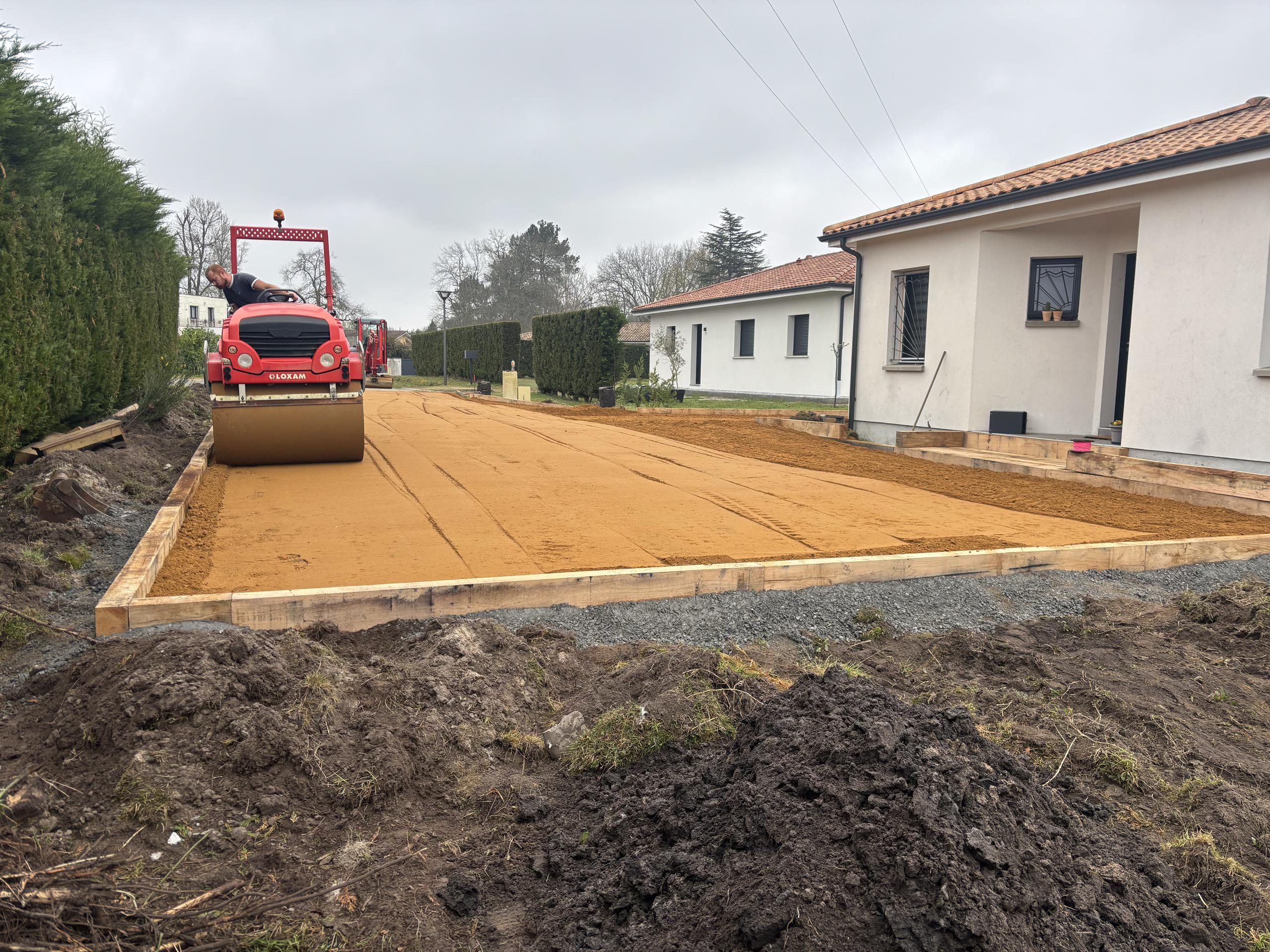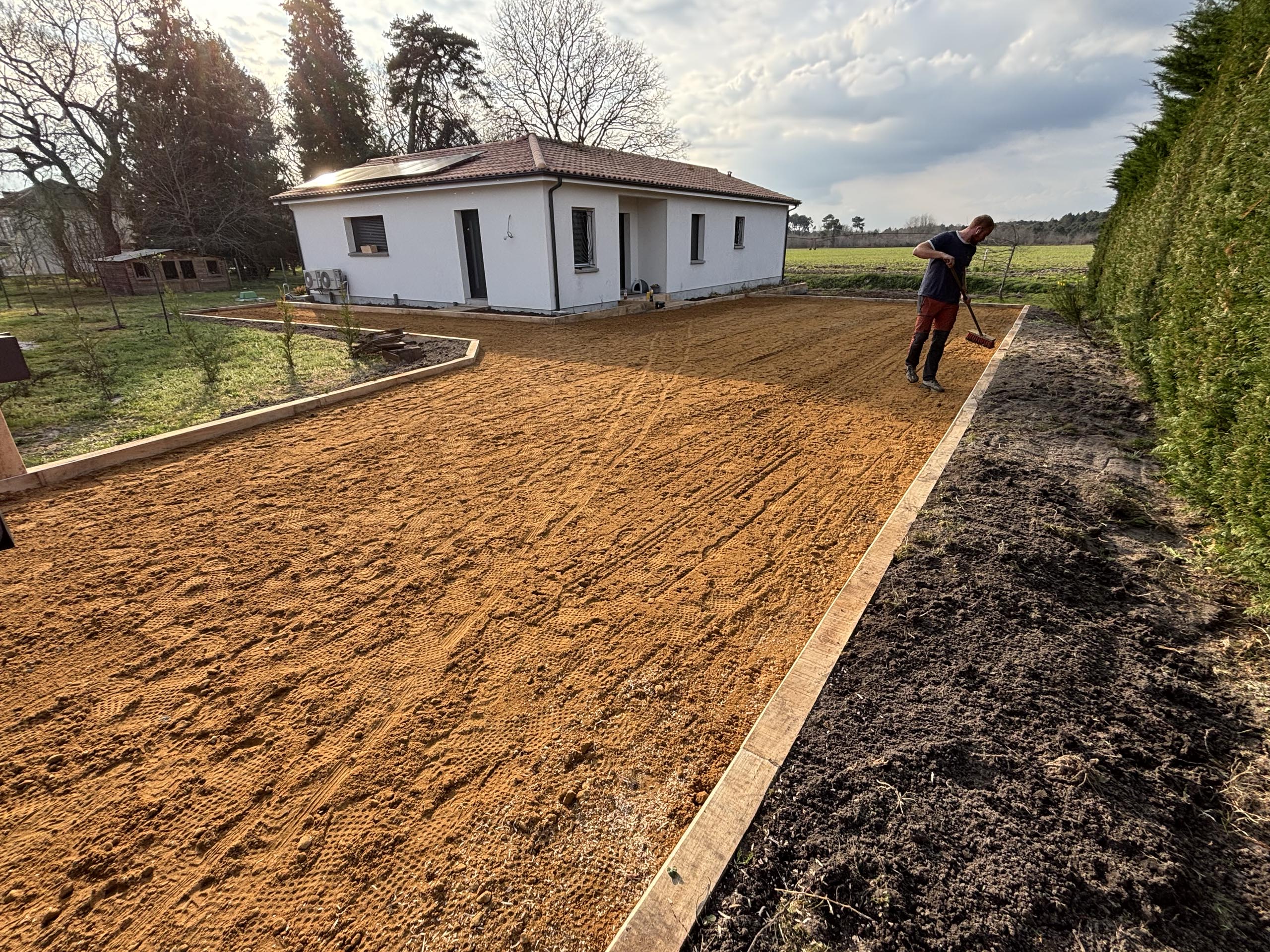 À Uchacq-et-Parentis, nous avons réalisé un projet d’aménagement extérieur pour un particulier souhaitant structurer son espace parking tout en conservant un style naturel. Les travaux ont consisté à implanter et délimiter une allée en gravier, installer des traverses en chêne pour marquer les zones et créer un pallier en chêne afin d’harmoniser l’ensemble. Ce type de réalisation apporte à la fois esthétisme et fonctionnalité, parfaitement adapté aux extérieurs des Landes.