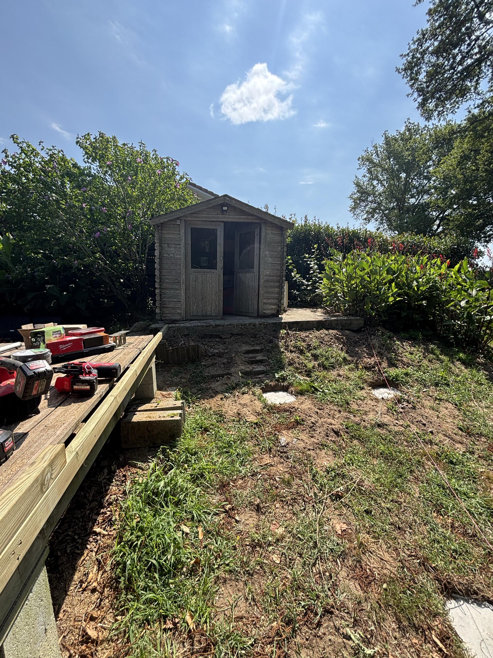 À Pontonx-les-Forges, nous avons transformé un ancien cabanon de jardin en un pool house moderne et fonctionnel. Ce projet sur mesure a été réalisé en ossature bois avec bardage landais en Douglas, un matériau noble et résistant, parfaitement adapté aux extérieurs des Landes.