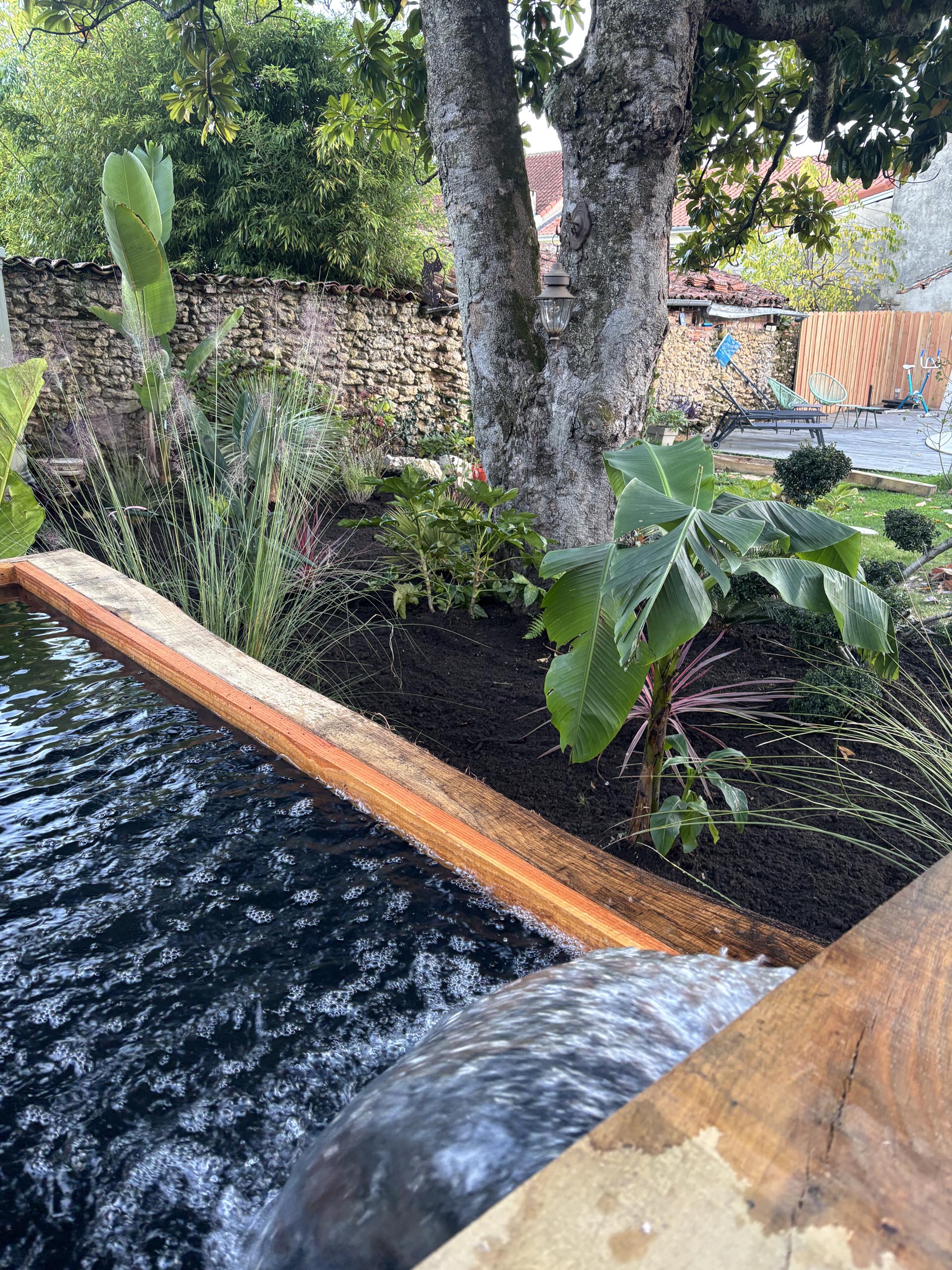 - Ambiance aquatique : Fontaine et bassin personnalisés pour instaurer une atmosphère zen et reposante.