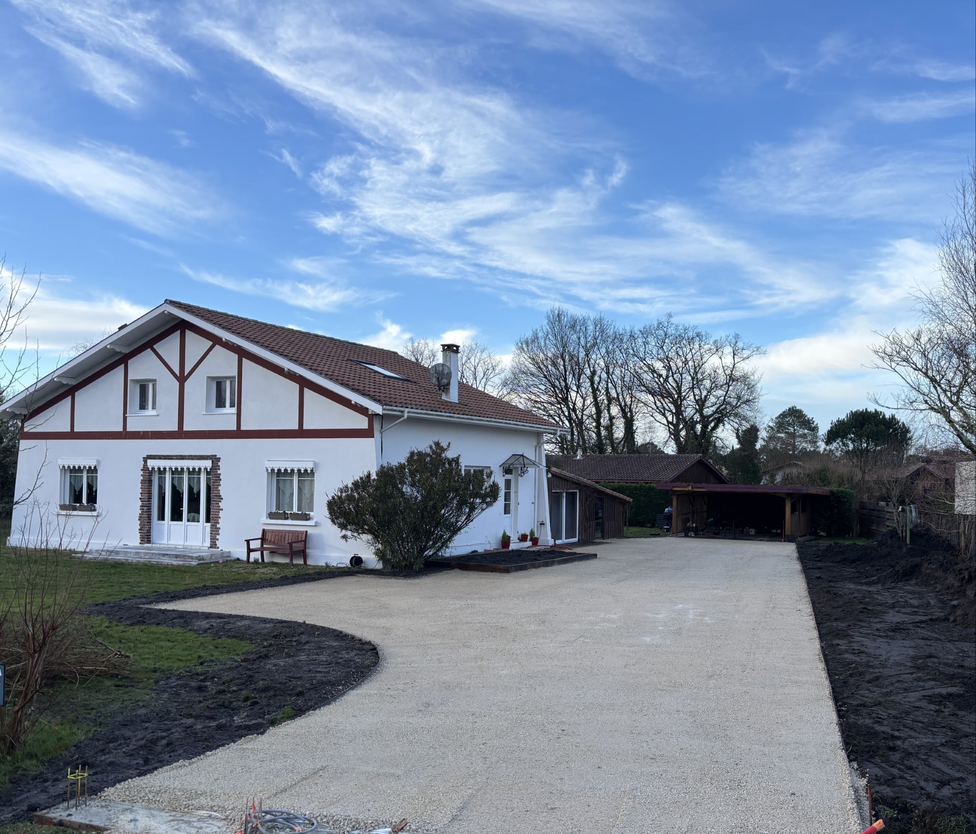 L’aménagement extérieur réalisé à Gastes (40160) avait pour objectif de transformer un terrain brut et peu fonctionnel en un espace structuré, accueillant et parfaitement adapté au cadre naturel landais.